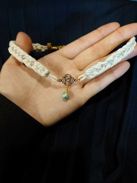 ワックスコードで鎖編みをした、首輪っぽいチョーカーです。